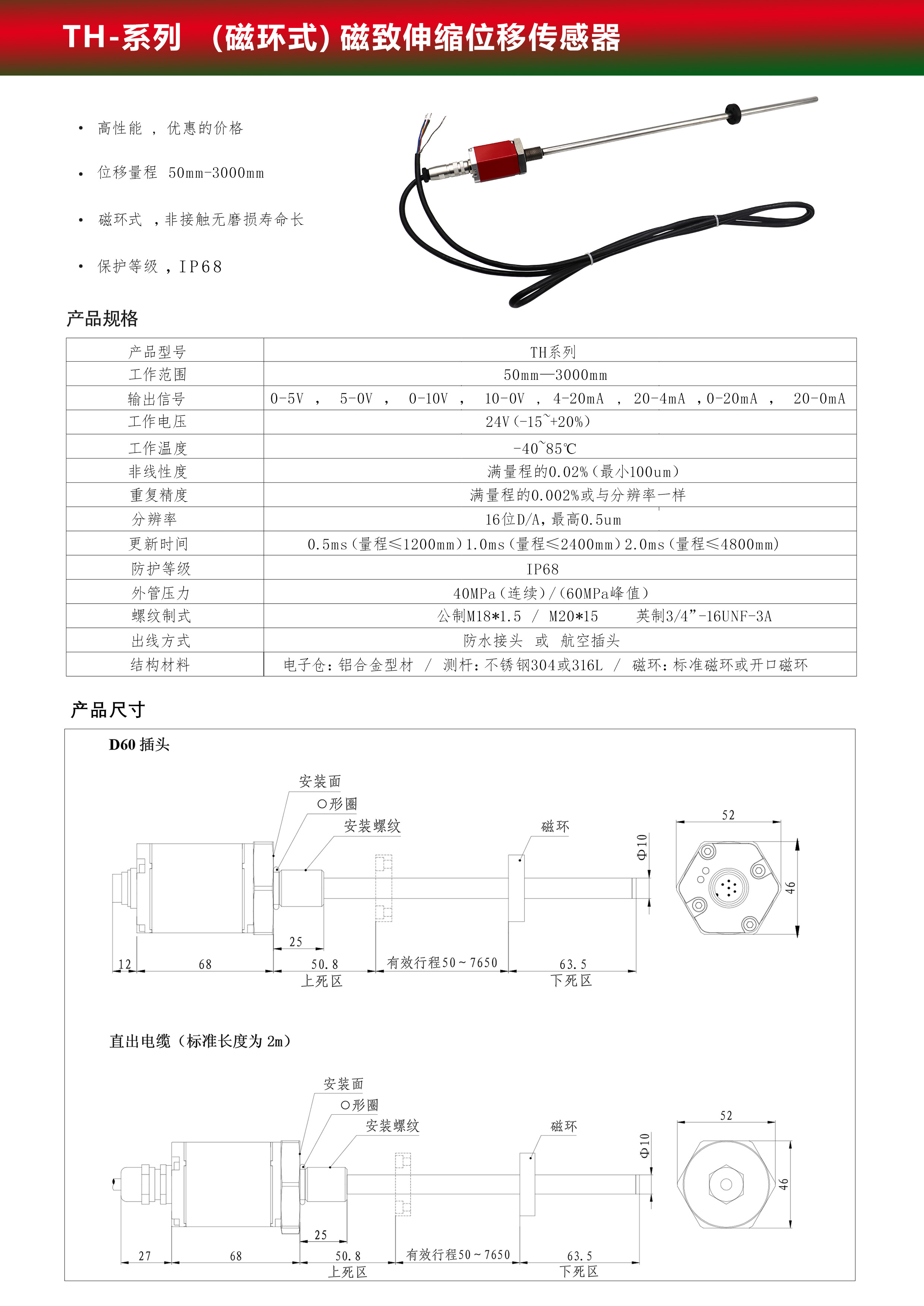 YKEK磁致伸縮位移傳感器 高精度位移傳感器 磁環(huán)式位移傳感器