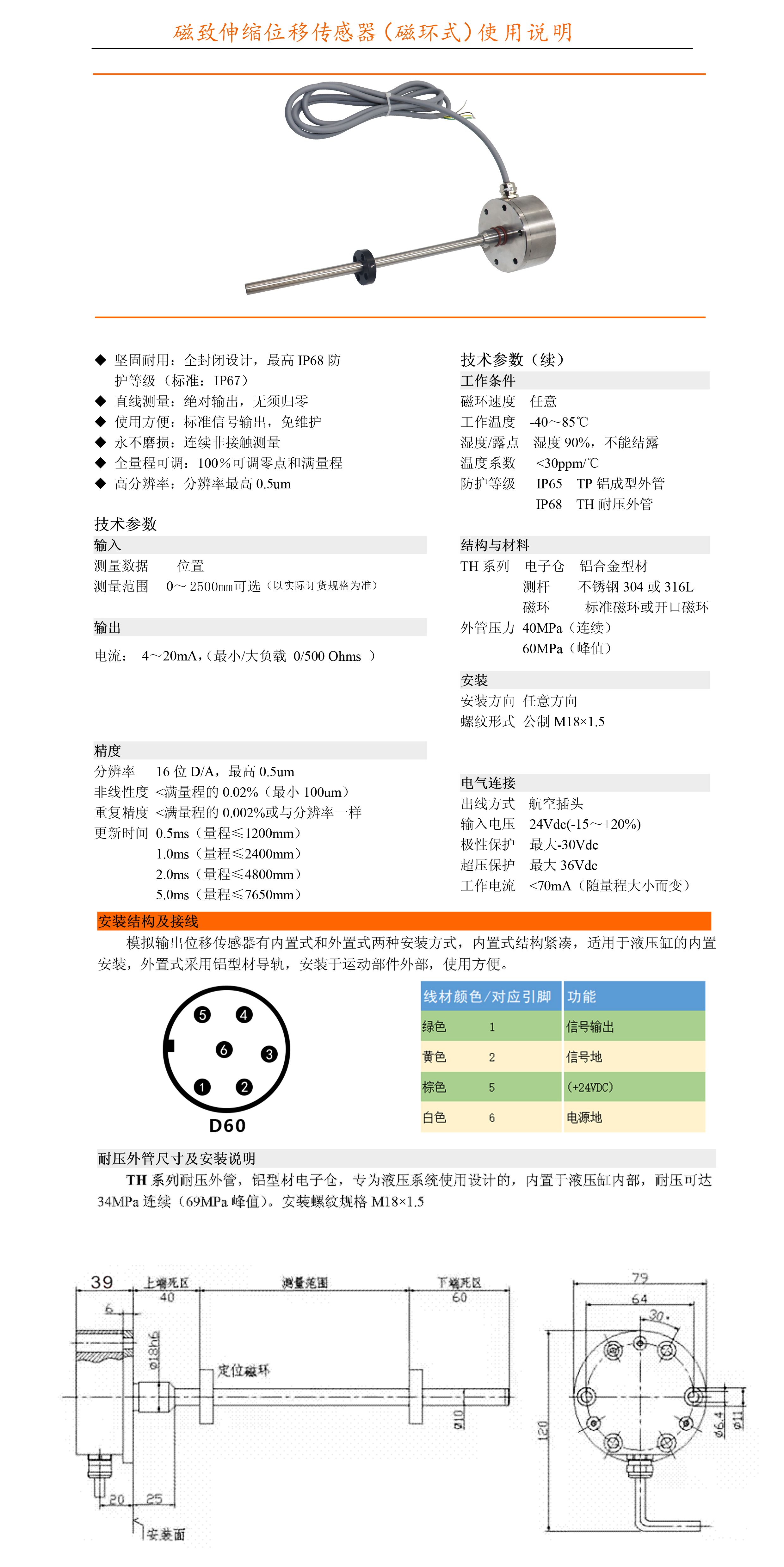 磁致伸縮位移傳感器 高精度位移傳感器 磁環(huán)式位移傳感器 耐壓式