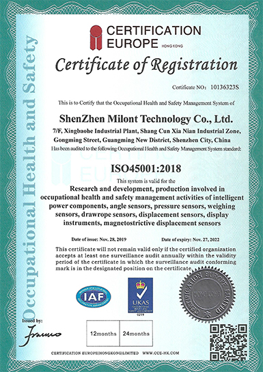 米蘭特ISO職業(yè)健康安全管理體系認(rèn)證證書
