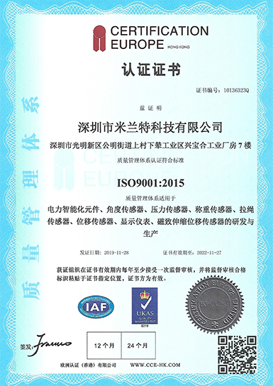 米蘭特ISO質(zhì)量管理體系認(rèn)證證書
